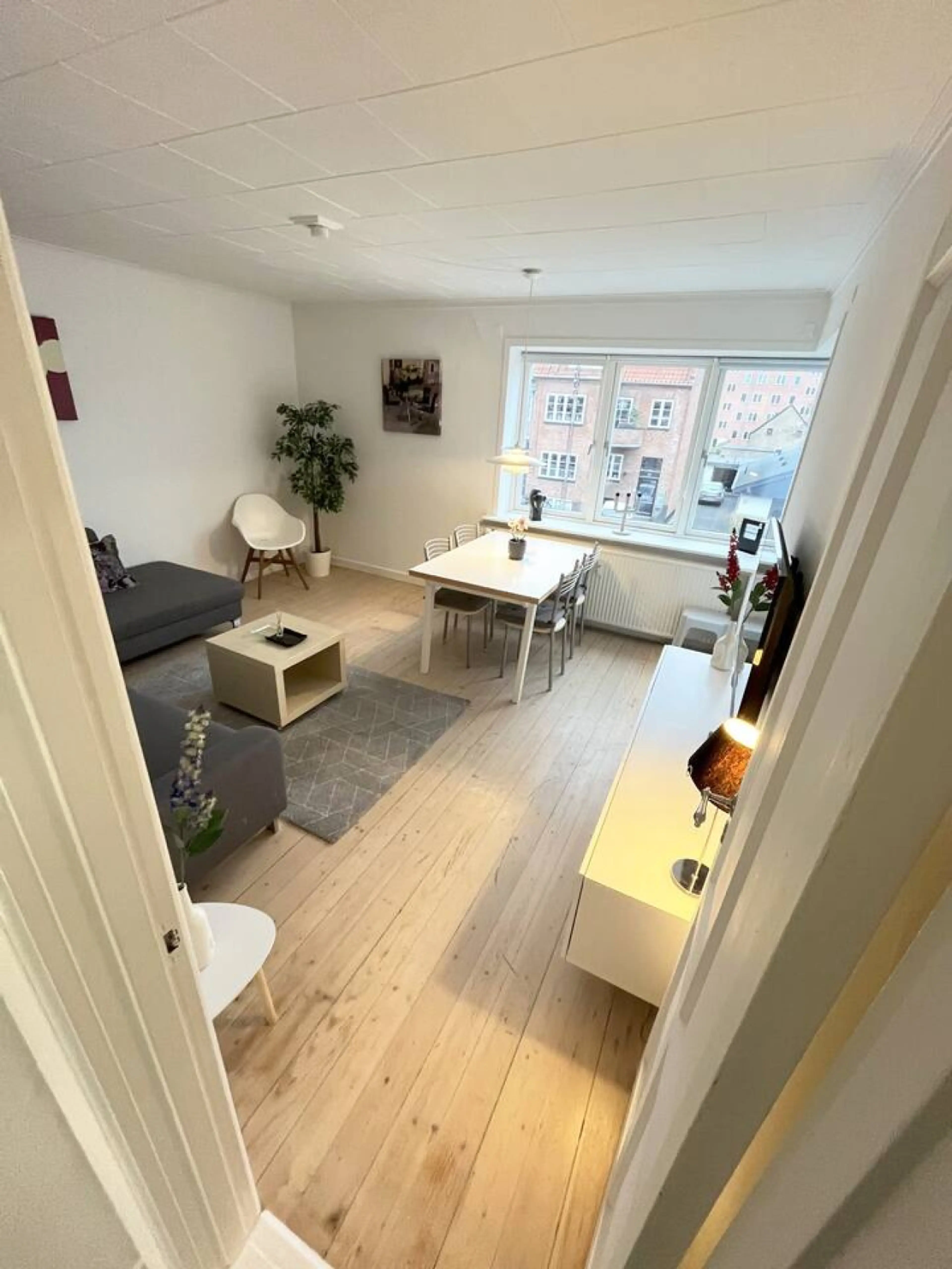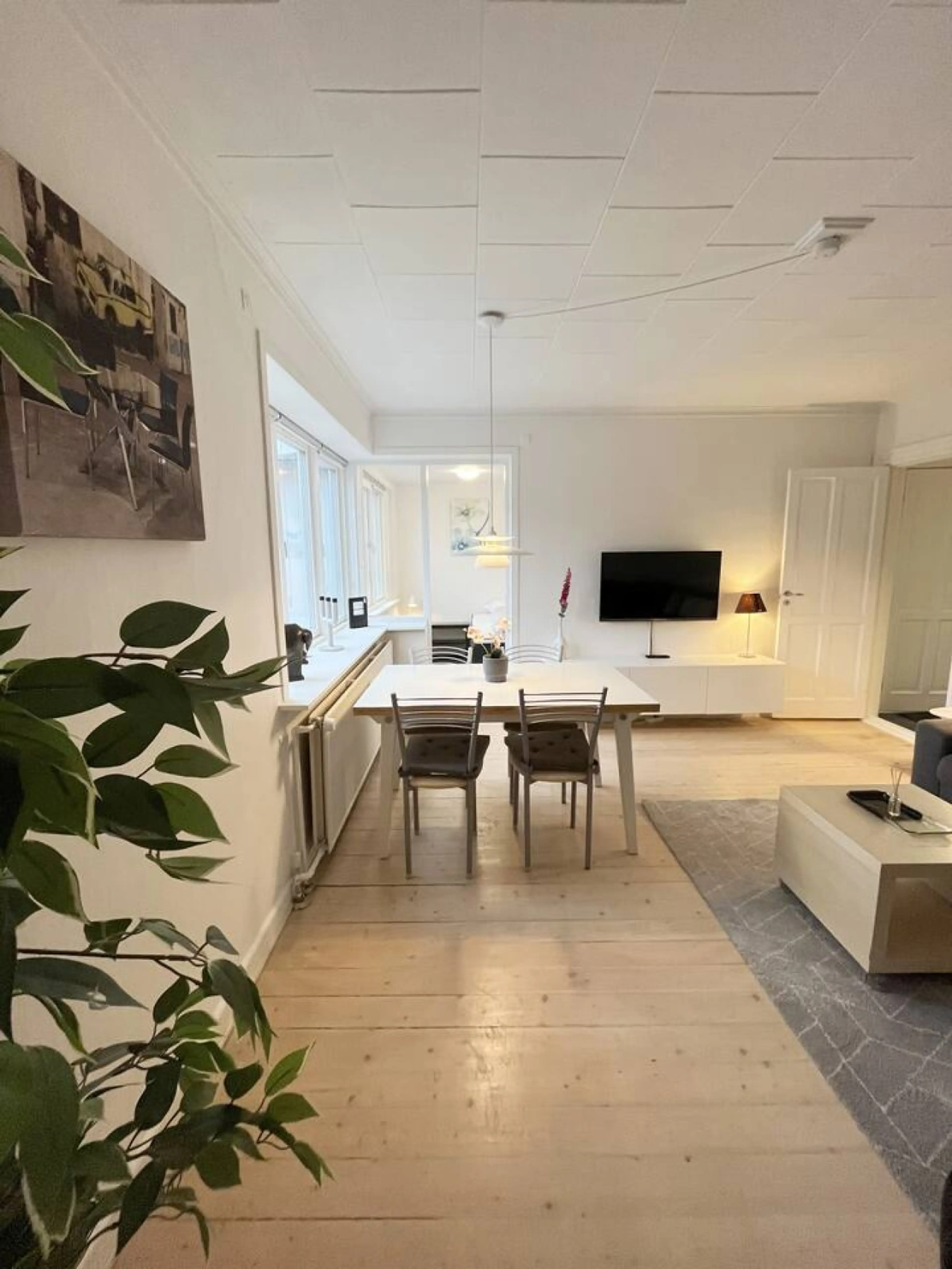 Lys og moderne lejlighed i rækkehusstil med højt til loftet, trægulve og masser af lys. Åbent opholds-/spiseområde, komfortabel sofa, smart-tv, veludstyret køkken. Ovenpå: stort dobbeltværelse + mindre værelse med 3 enkeltsenge. Moderne badeværelse med bruser. Varm, personlig atmosfære med smuk kuns...