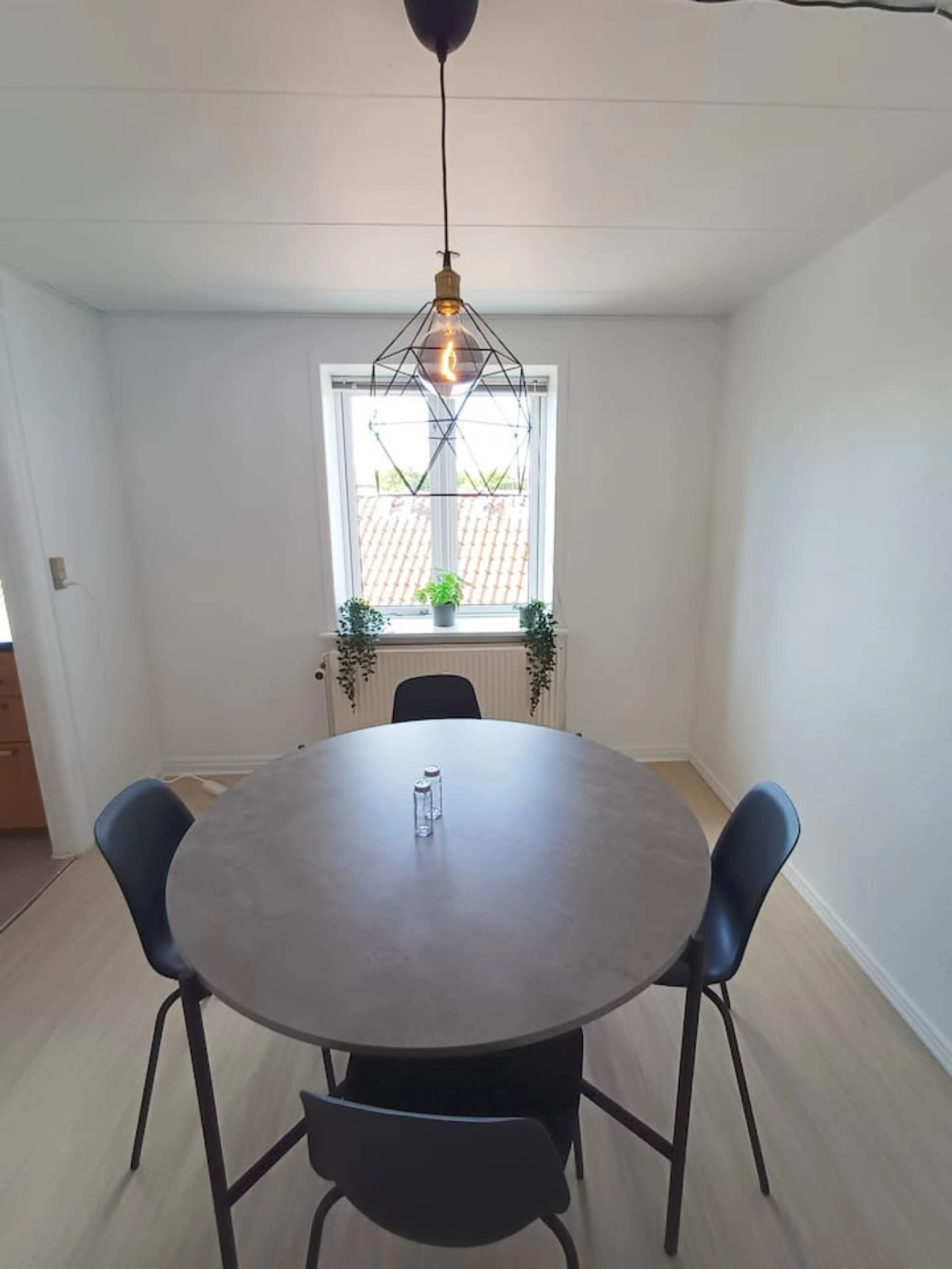 Newly renovated studio apartment on the pedestrian street in Hjørring with free parking. Here you get a nice bright room with a double bed, office chair and a desk, as well as free WIFI. Absolutely perfect for the busy business woman or man who needs a quiet place to work and spend the night. ***Bed...